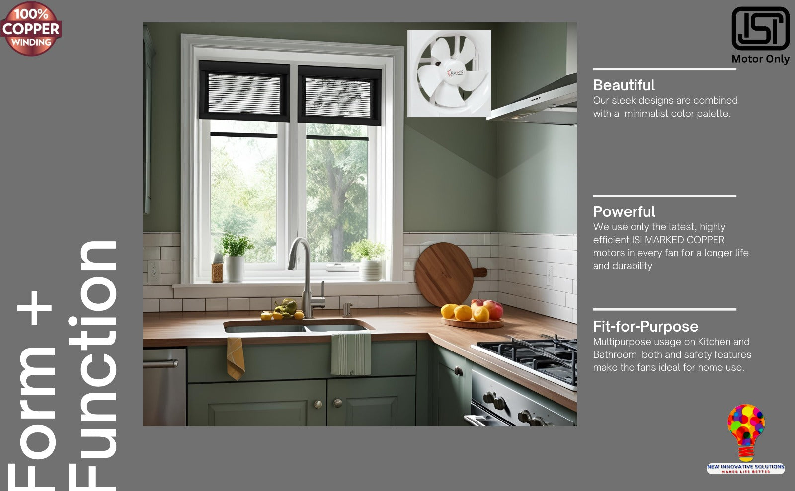 Pure Copper Motor provides durability to this exhaust fan and ensures a long life for this product......