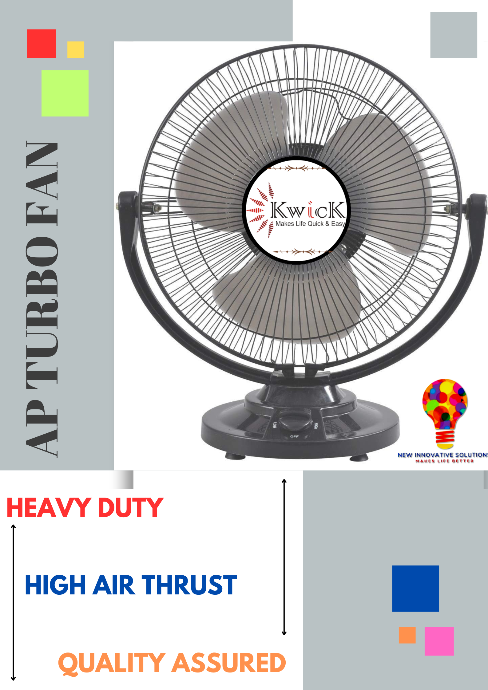 KWICK TURBO ALL PURPOSE HEAVY DUTY TABLE FAN 12"(300mm) SWEEP BLACK
