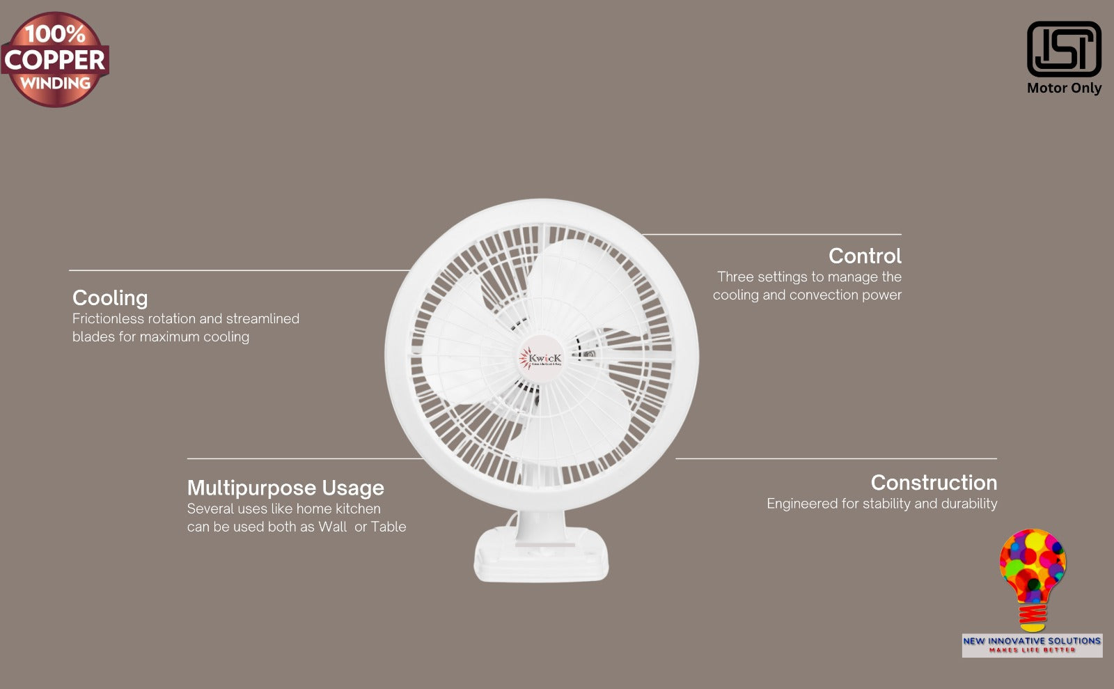 POWERFUL PERFORMANCE: 80-watt ISI marked motor with 3-speed settings and 2400 RPM for efficient air circulation up to 1500 cubic metres per minute
